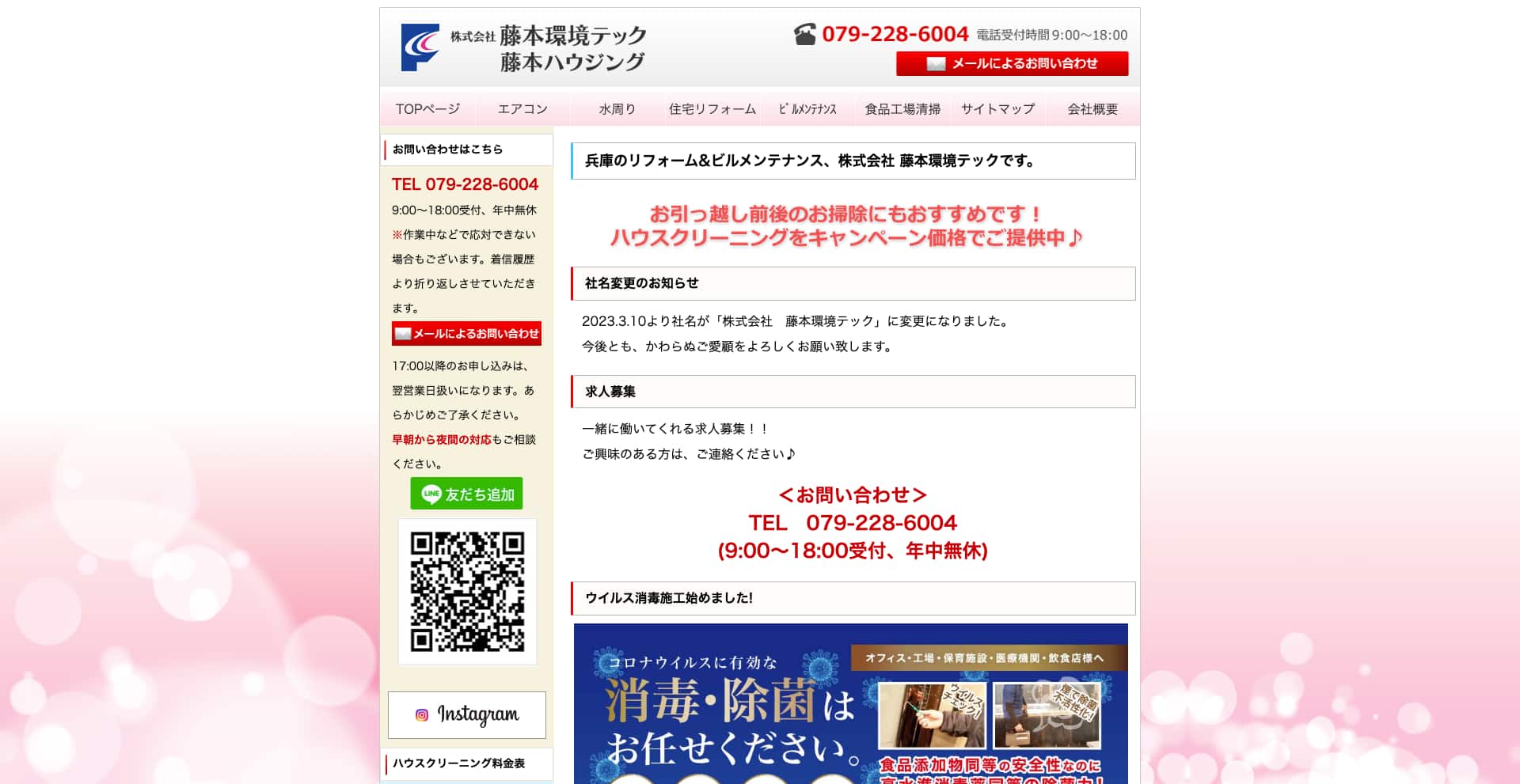 兵庫県を中心に、株式会社藤本環境テック は、ハウスクリーニングとエアコンクリーニングを主軸に、お客様の住まいを「清潔」と「快適」で満たすプロフェッショナルです。厨房・浴室・洗面・トイレなどの水回りから、レンジフード、ガラス・サッシ・網戸、床ワックス、クロス貼替、大掃除、定期清掃、家事代行まで、暮らしの様々なニーズに応える豊富なメニューを揃えています。