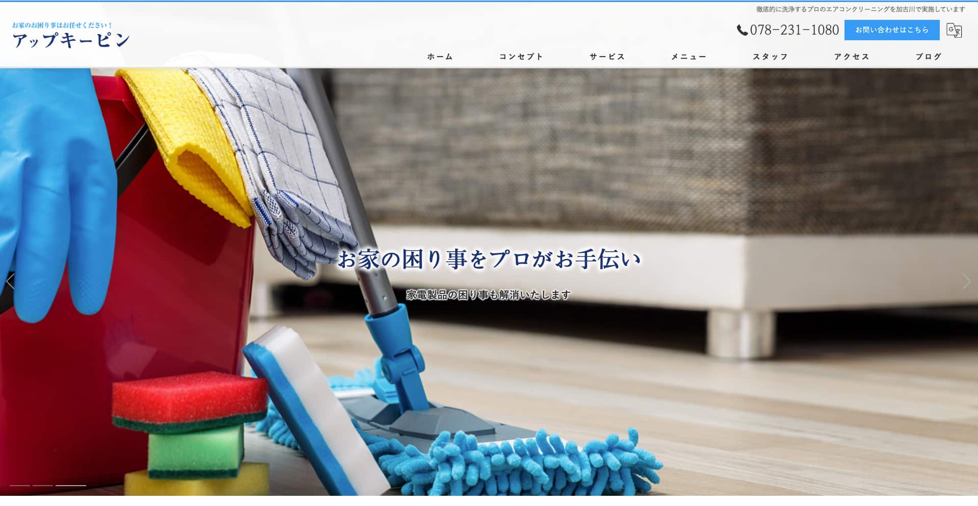 | サービス内容 | エアコン、キッチン、レンジフード、浴室、トイレ、洗面所、フローリング、ガラスサッシ・網戸、便利屋業など |