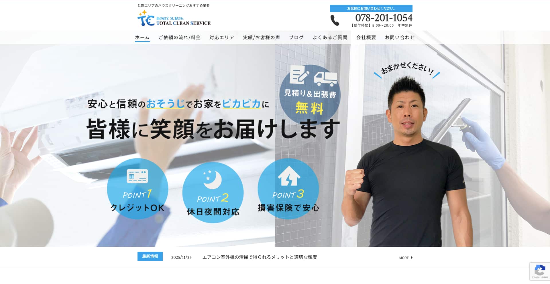 | サービス内容 | エアコン、キッチン、レンジフード、浴室、トイレ、洗面所、フローリング、窓・網戸・サッシ、リフォームなど |