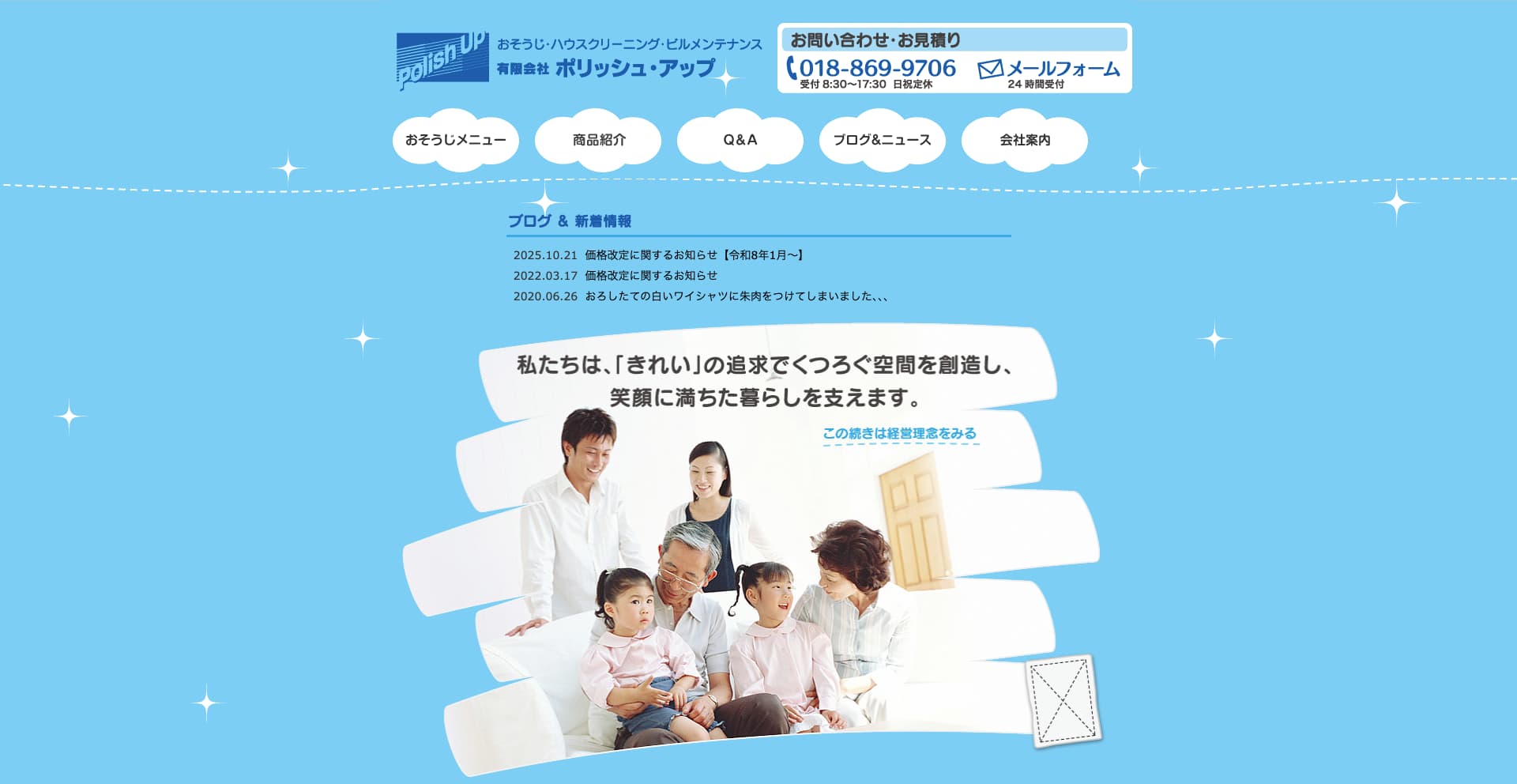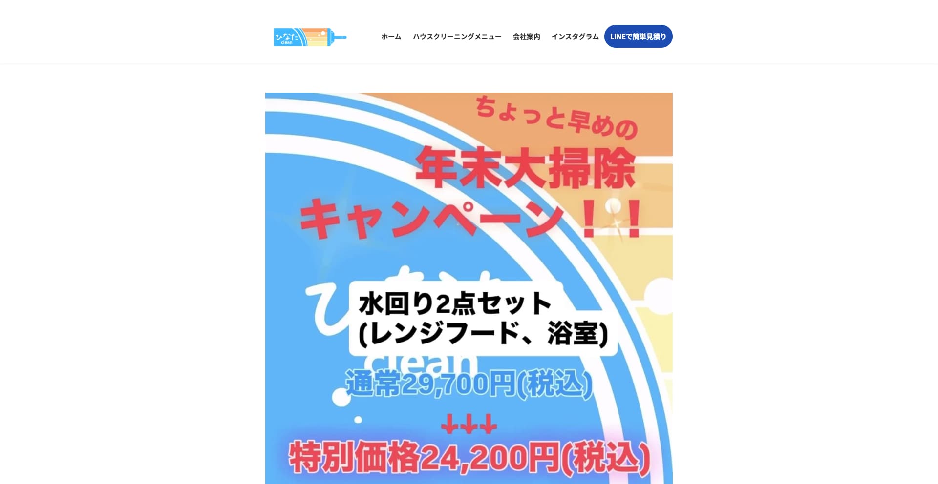 | サービス内容 | エアコン、キッチン、レンジフード、浴室、洗面所、トイレ、フローリング、サッシ・ガラスなど |