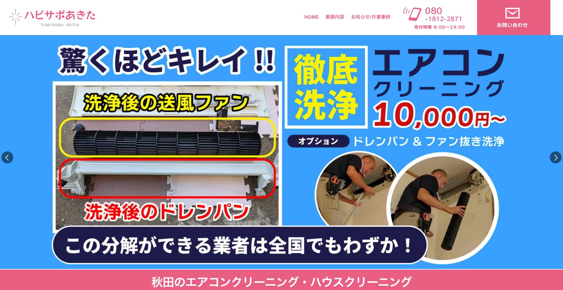 ハピサポあきたは、秋田県全域を対象に「家の中がキレイになると、人は自然と笑顔になれる」という思いを込めて、ハウスクリーニングサービスを展開しています。サービス内容は幅広く、エアコンの分解洗浄から、キッチン・レンジフード、浴室・トイレ・洗面所・フローリングワックス・窓のお掃除、さらには引越し前後のクリーニングまで一貫して対応します。