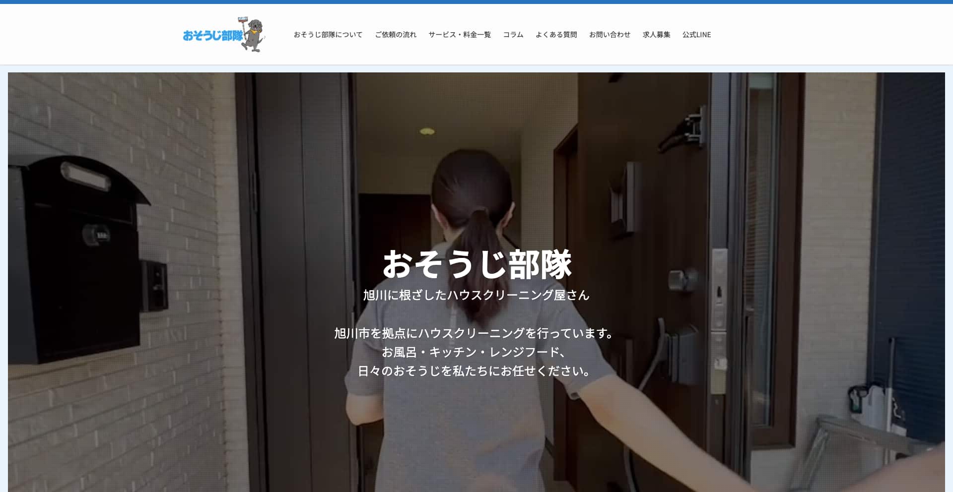 「おそうじ部隊」は、北海道旭川市を拠点に、プロの技術で暮らしの「汚れ・疲れ」を丸ごとサポートするハウスクリーニング専門店です。浴室、キッチン、レンジフード、トイレ、洗面所といった日常使いの“曲者”水まわりを、専用の清掃メニューで徹底的に磨き上げ、油汚れ・水垢・尿石といった市販洗剤では落としきれない頑固な汚れにも対応しています。