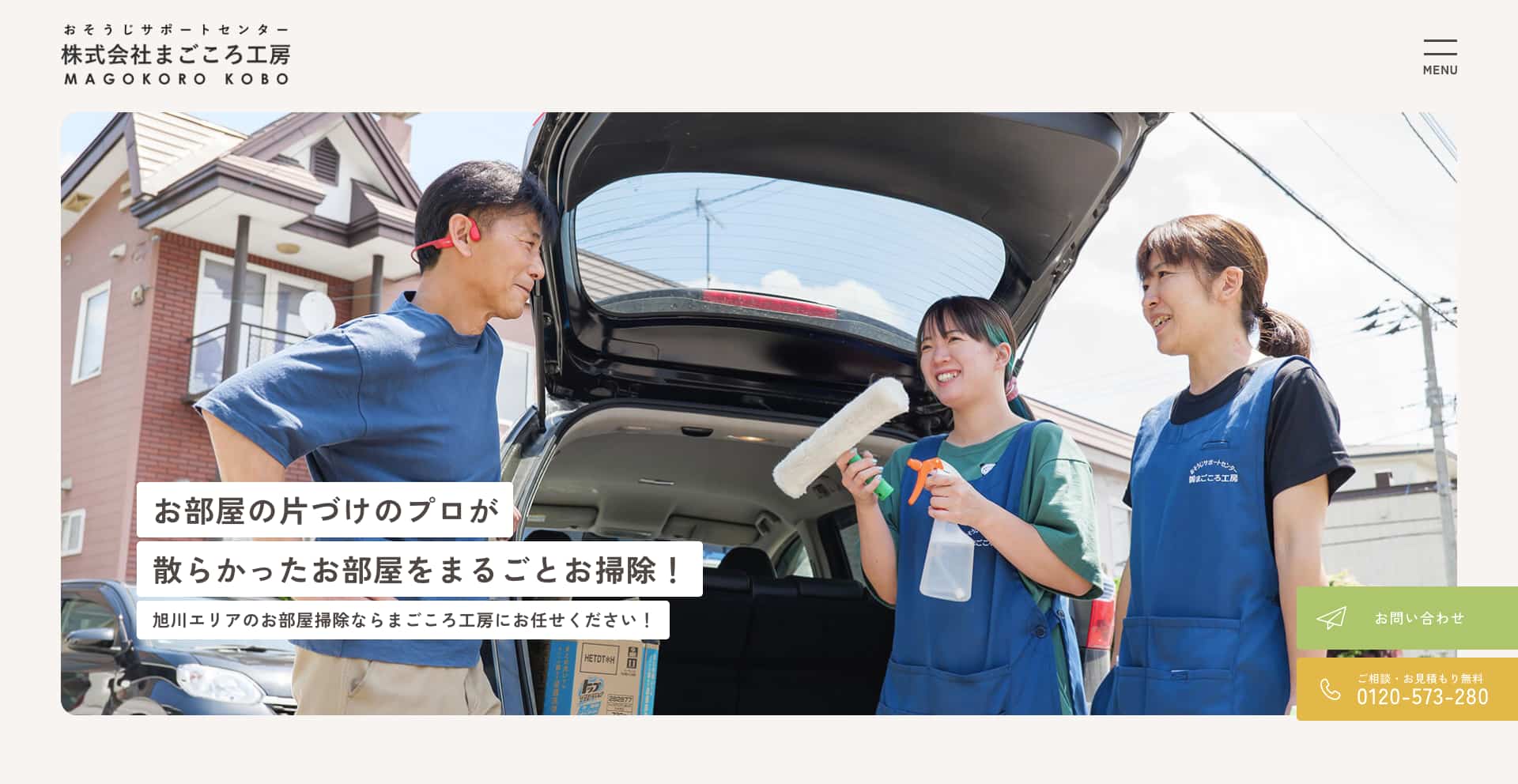 「まごころ工房」は、北海道旭川市を拠点に、お部屋の片づけから設備まわりの分解クリーニングまで幅広く対応します。社名に込められた“まごころ”という言葉の通り、お客様一人ひとりに丁寧に寄り添い、暮らしの快適さを支えるハウスクリーニングサービスを提供しています。