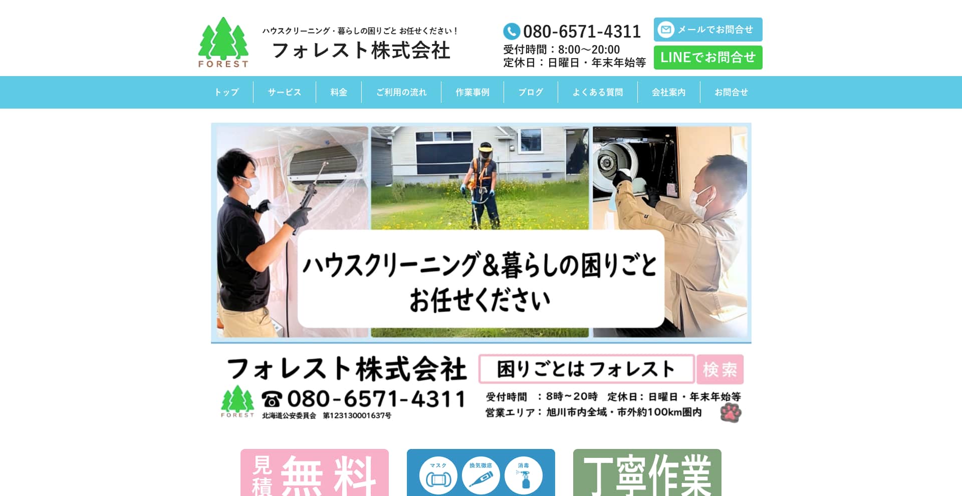 フォレスト株式会社は、北海道旭川市を拠点に“住まいのキレイ”をトータルサポートしています。ハウスクリーニングを核としながら、エアコン・キッチン・浴室・トイレなどの徹底清掃をはじめ、庭木のお手入れ・不用品回収・空室/入退去清掃・除雪作業まで、暮らしのさまざまな「困った」をワンストップで対応。どんな依頼にも誠実に向き合い、地域密着型のきめ細やかなサービスで、多くのリピーターから信頼を集めています。