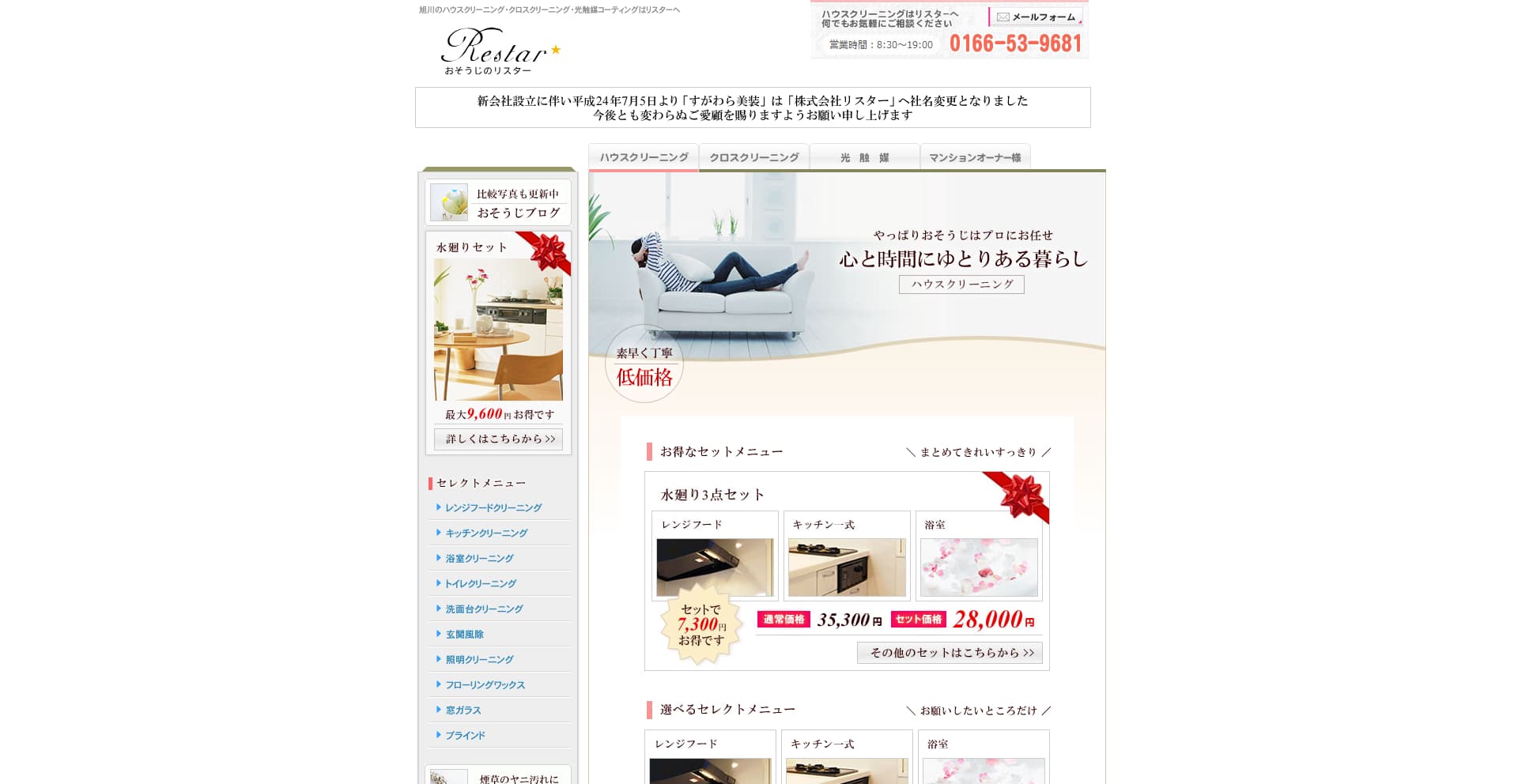 | サービス内容 | キッチン、レンジフード、浴室、トイレ、洗面台、窓ガラス、フローリングなど |