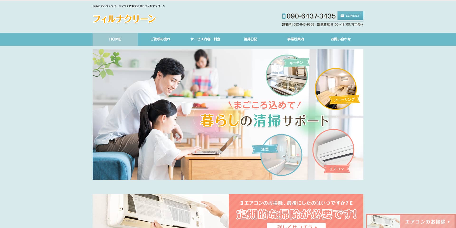 「フィルナクリーン」は、広島県を中心に展開するハウスクリーニング専門サービスです。豊富な経験とノウハウを活かし、「自己満足の掃除」ではなく、お客様の目線に立った丁寧な清掃を大切にしています。キッチンや浴室、トイレ、エアコンなど、家庭内のあらゆる清掃に対応し、店舗やオフィスのクリーニングも手掛けています。