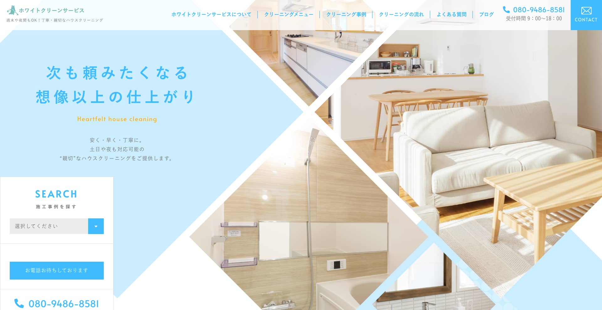 「ホワイトクリーンサービス」は、ハウスクリーニングを専門とする会社です。油汚れのこびりついたキッチン、水アカが気になる浴室・洗面所、手の届きづらいエアコンなど、日常生活で「掃除が大変だな」と感じる場所を、プロの技術とホスピタリティでしっかりケアします。
