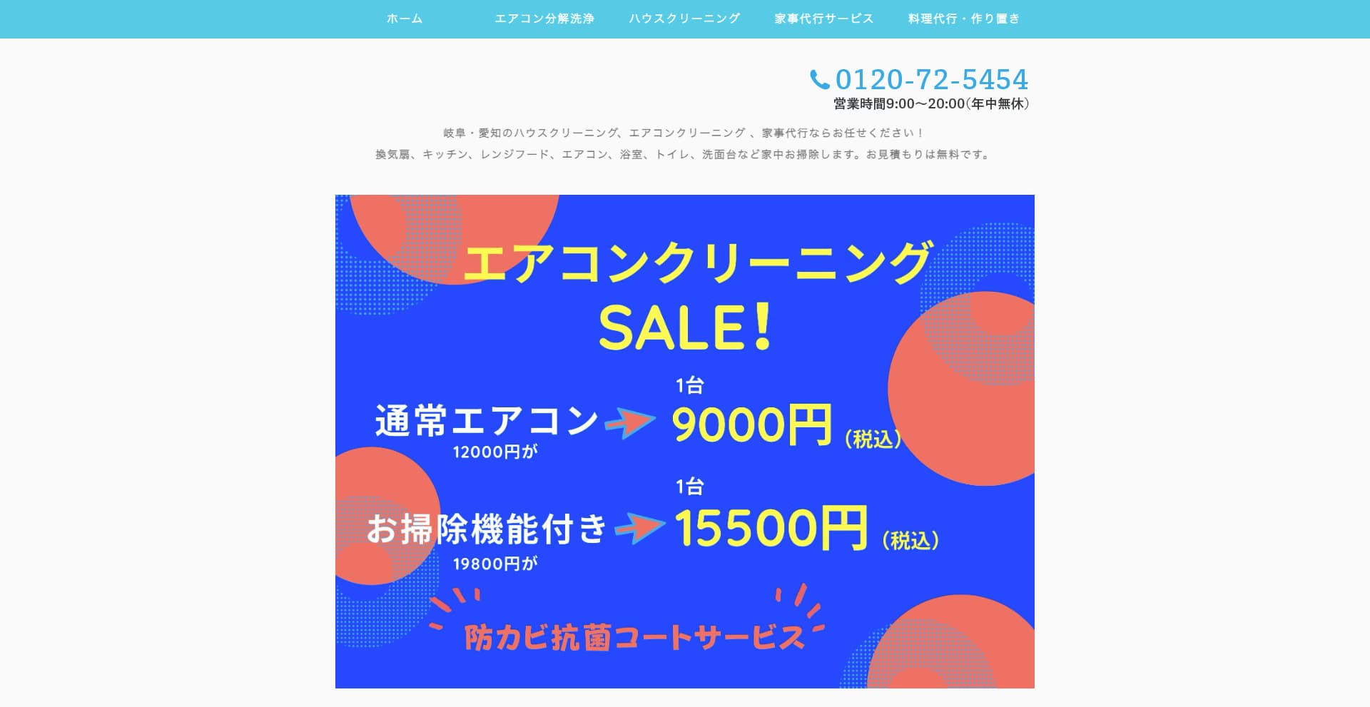 | サービス内容 | エアコン、キッチン、レンジフード、浴室、洗面所、トイレ、窓・サッシなど |