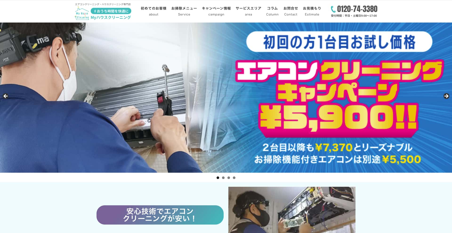 | サービス内容 | エアコン、浴室、洗面所、レンジフード、キッチン、トイレなど |