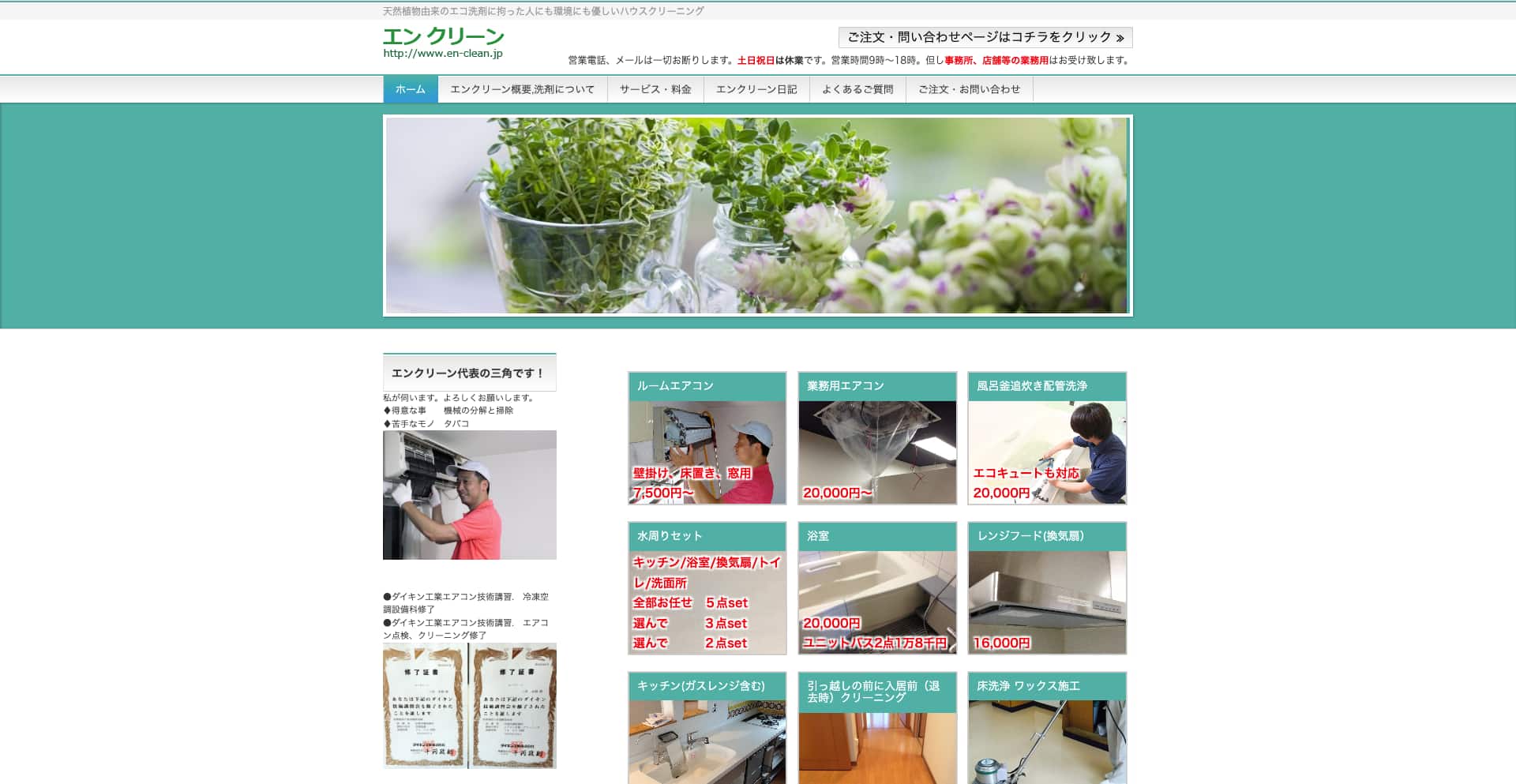 エンクリーンは、東京都八王子市を拠点に、エアコンクリーニングをはじめとするハウスクリーニング全般を提供する地域密着型の専門店です。代表・三角幸朗氏はダイキン工業の「冷凍空調設備科」と「エアコン点検・クリーニング科」を修了し、メーカー基準に沿った高品質な施工を実施しています。