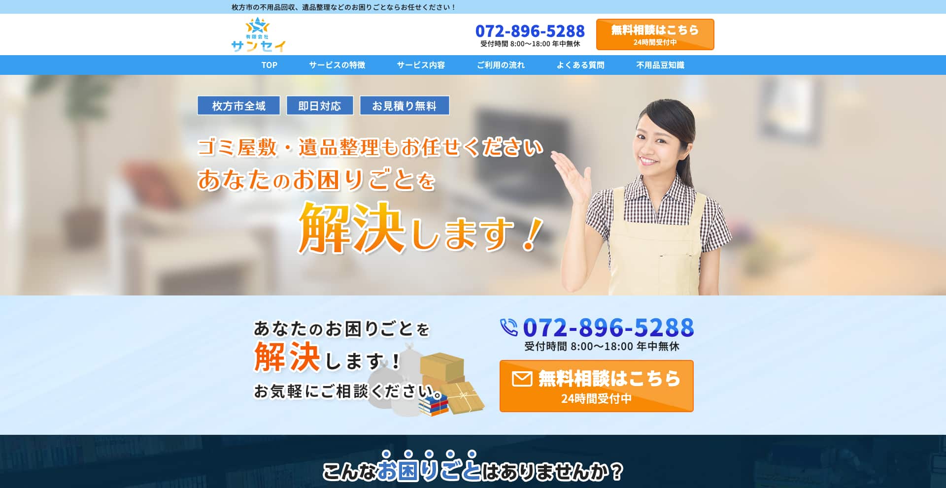 | 対応エリア | 大阪府全域、京都府・奈良県・兵庫県の一部地域 |