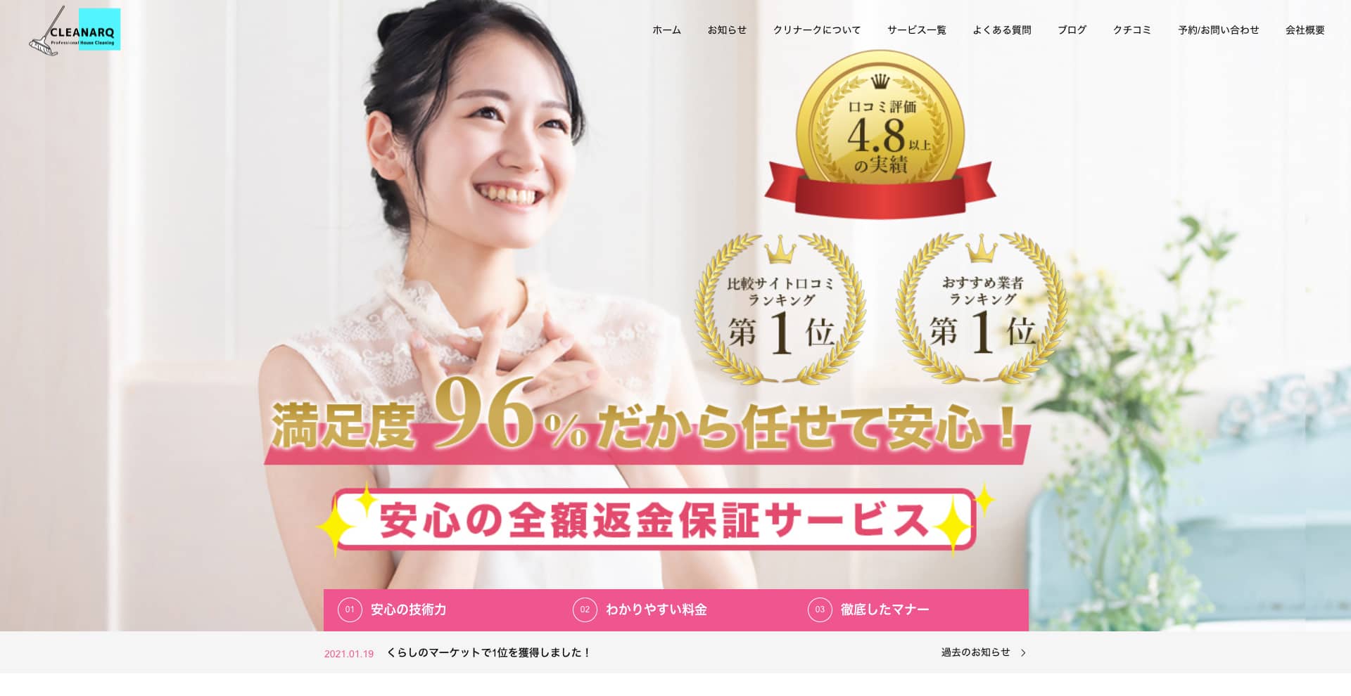 「クリナーク」は、関西を中心としたハウスクリーニングサービスの専門業者です。「キレイと笑顔をお届けする」をコンセプトに、清掃技術だけでなく、訪問時のマナーや接客にもこだわり、顧客満足度の高いハウスクリーニングを提供しています。