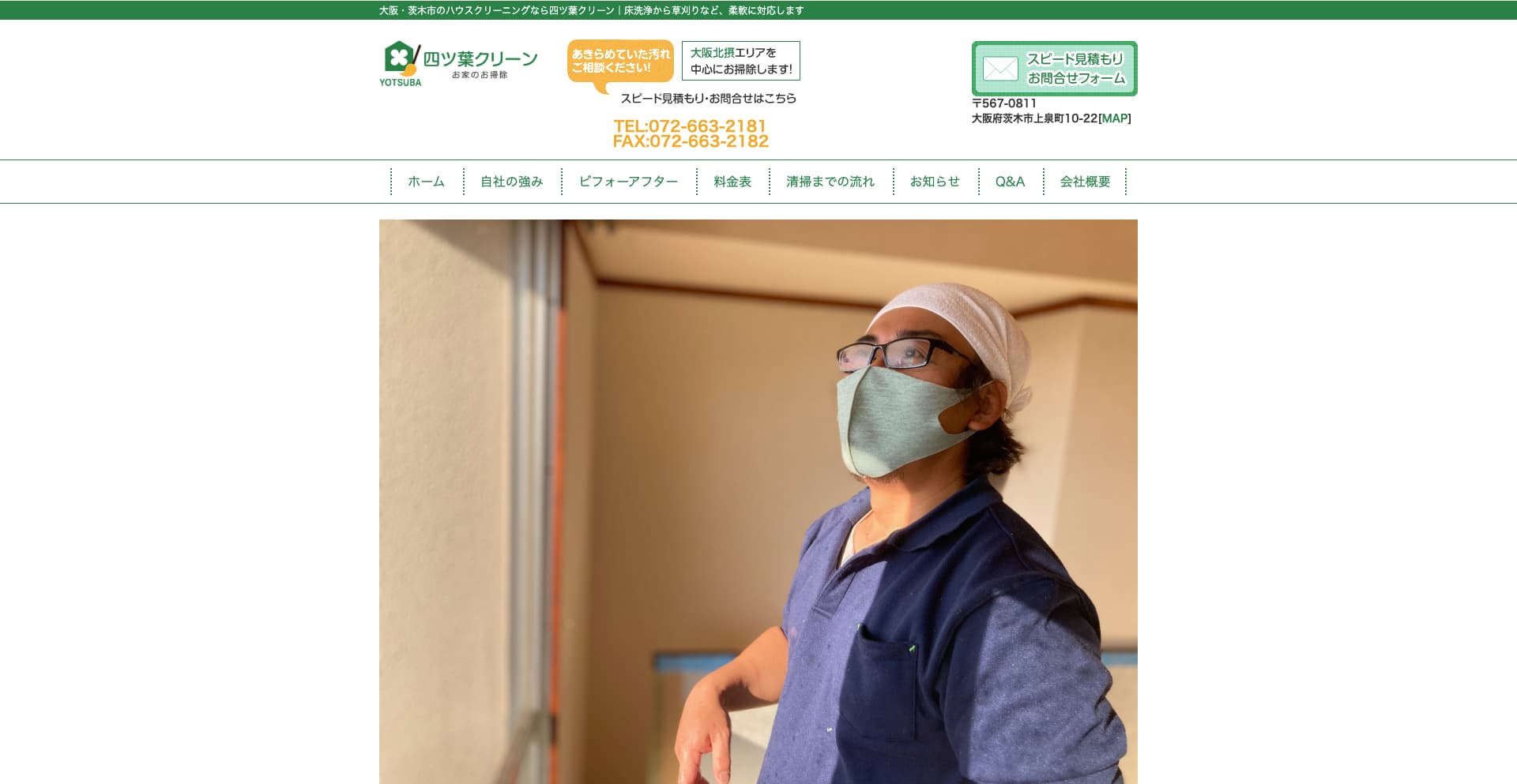 「四ツ葉クリーン」は、大阪府茨木市を拠点に地域密着で営業するハウスクリーニングの専門業者です。キッチン・浴室・トイレといった水まわりをはじめ、換気扇やエアコン、床清掃など、住まい全体のクリーニングに幅広く対応しています。