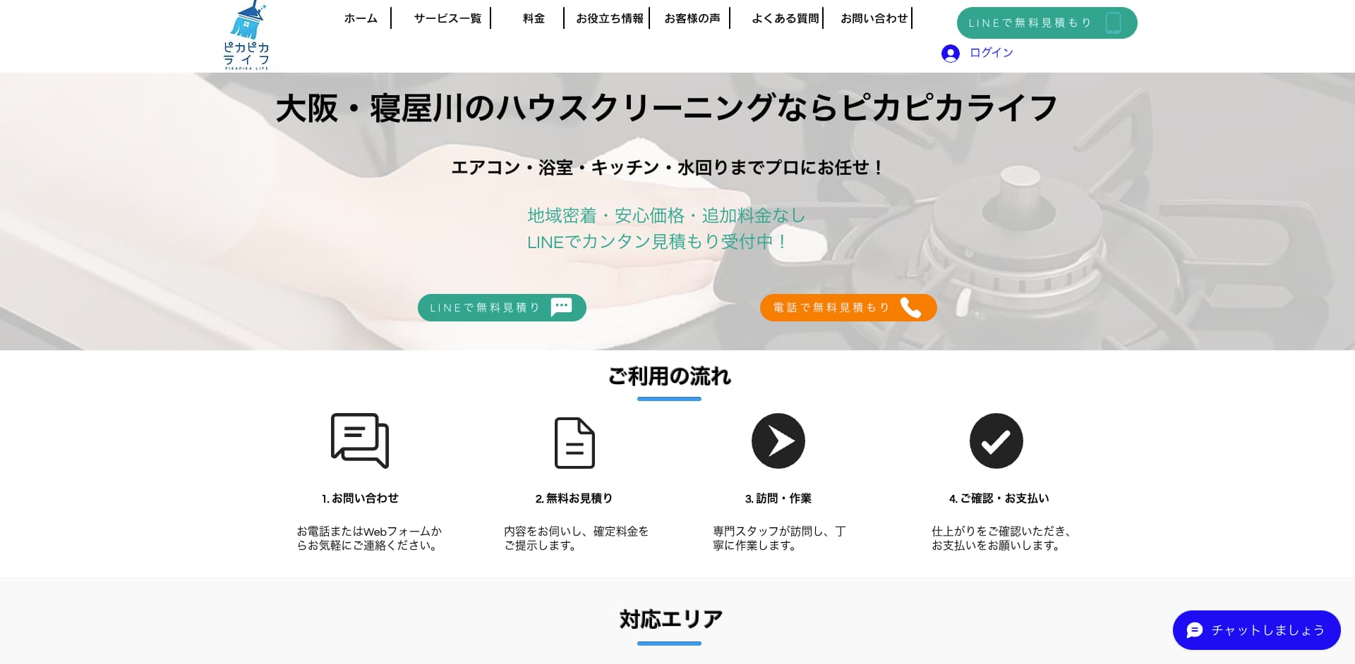 「ピカピカライフ」は、大阪府を拠点に地域密着でハウスクリーニングサービスを提供するプロフェッショナルです。「汚れを落とすだけでなく、暮らしを快適に整える」という理念のもと、エアコン・浴室・キッチン・レンジフード・トイレ・洗面台などの水まわりクリーニングをはじめ、空室清掃や定期清掃にも対応しています。