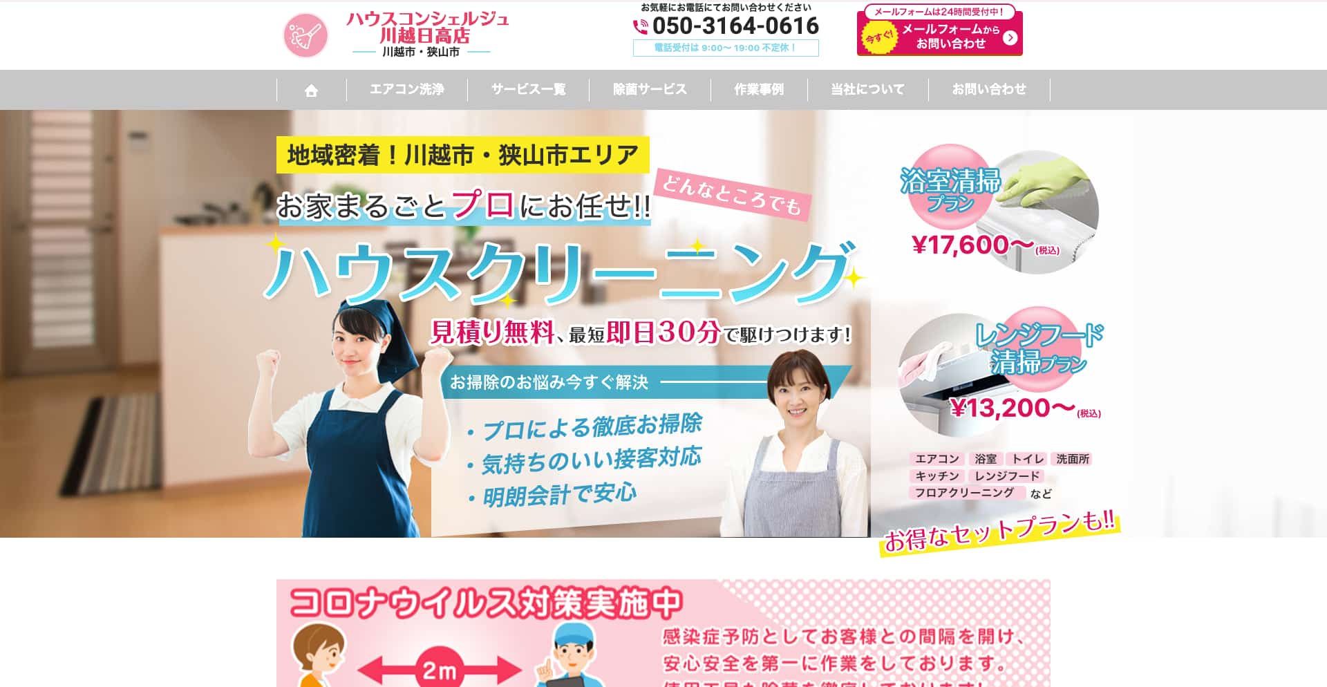 | 対応エリア | 埼玉県川越市・入間市・狭山市・坂戸市・鴻巣市・桶川市・北本市・鶴ヶ島市・東松山市・飯能市・日高市 |