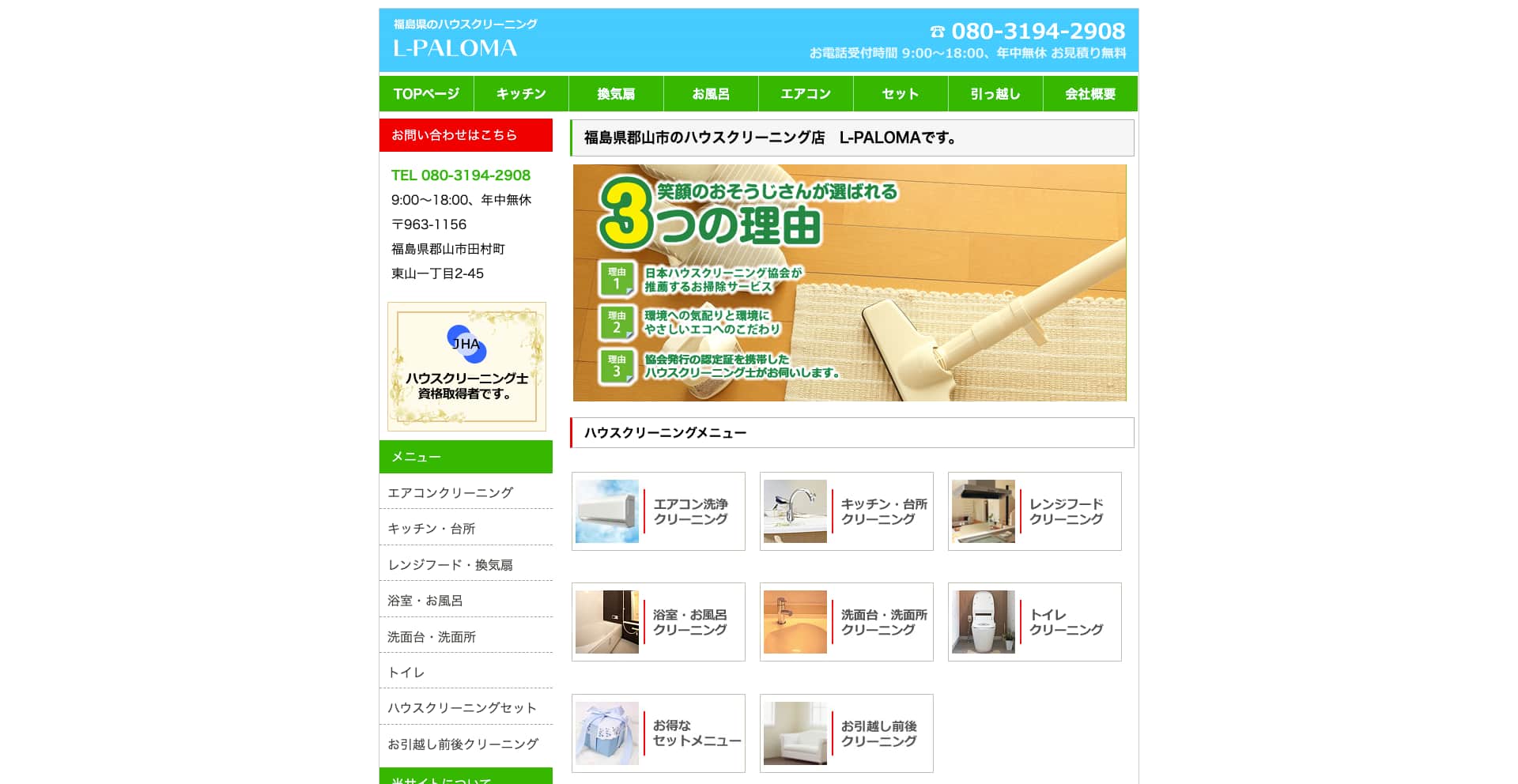 福島県郡山市を拠点にハウスクリーニングを展開する「L-PALOMA」は、安心・環境配慮・丁寧な仕事をモットーに、お住まいを丸ごとクリアな状態へ導きます。キッチンやレンジフード・浴室・洗面所・トイレなどの個別清掃はもちろん、お引越し前後のまるごとクリーニングにも対応。