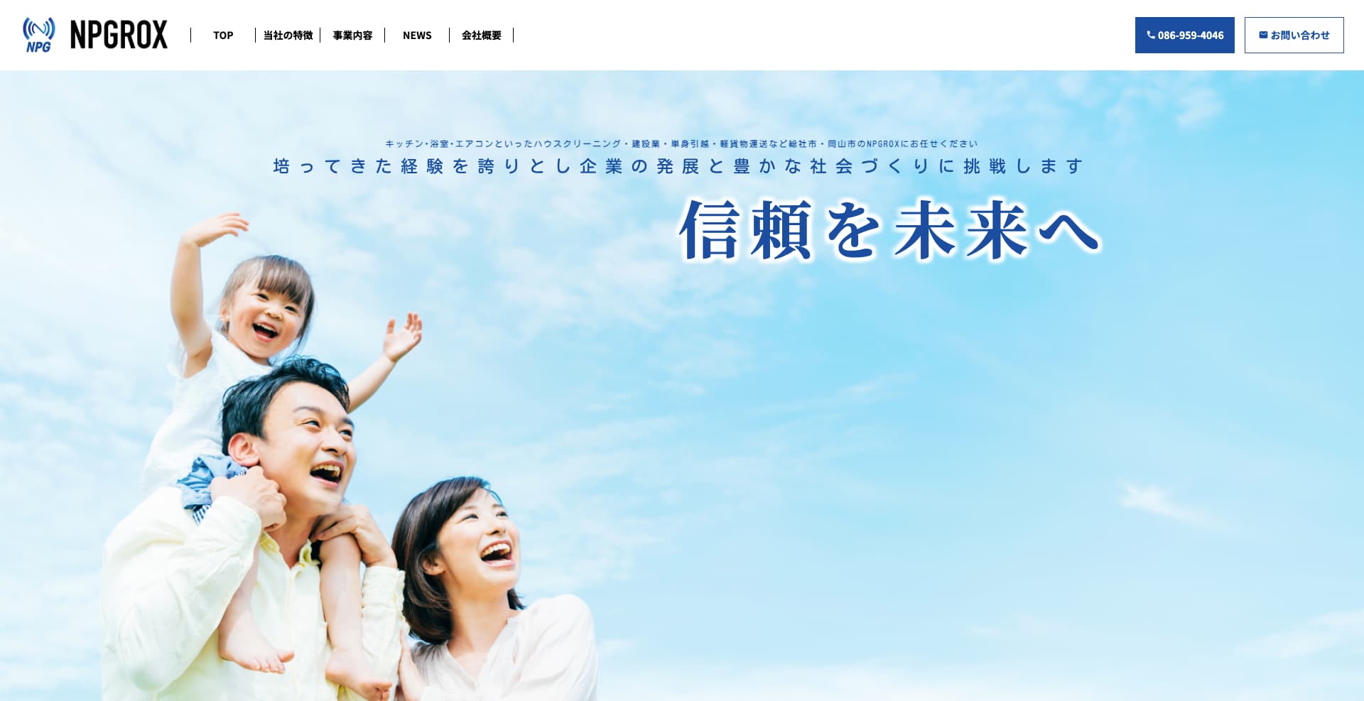 株式会社NPGROXは、岡山県を拠点とし、ハウスクリーニングを主軸とした住まいのサービスを提供する企業です。研修を積んだプロの清掃スタッフが、エアコン、キッチン、浴室など水回りから室内外まで、多様な清掃ニーズに対応。また、一般的な汚れだけでなく、長年放置された頑固な油汚れ・水アカ・カビ等にも、専門の洗剤や高性能器具を使って徹底的にアプローチ。