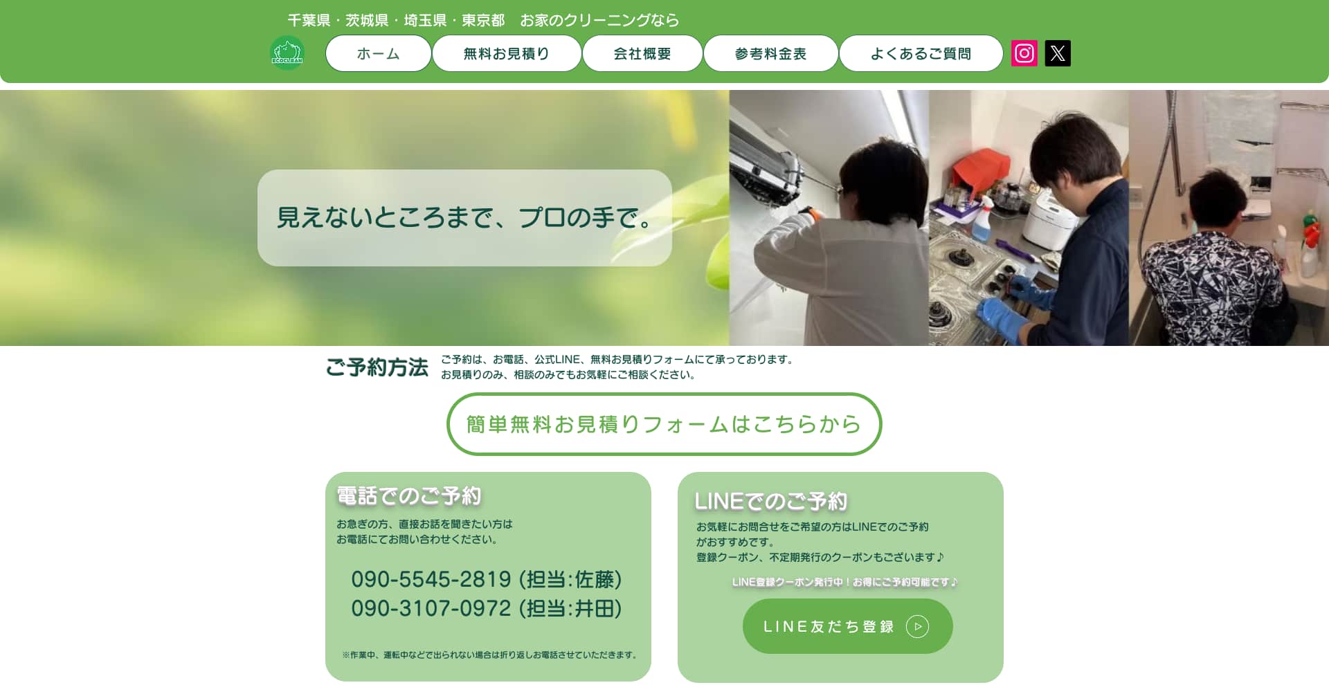 | サービス内容 | エアコン、キッチン、レンジフード、浴室、洗面台、トイレなど |