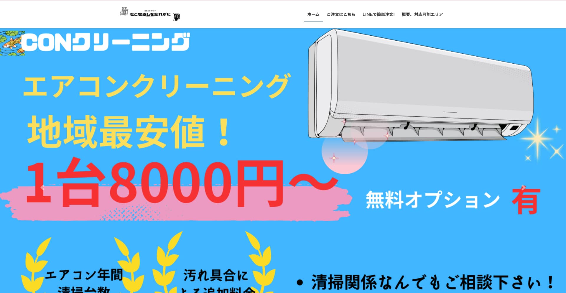 | サービス内容 | エアコン、キッチン、レンジフード、浴室、トイレ、洗面台など |