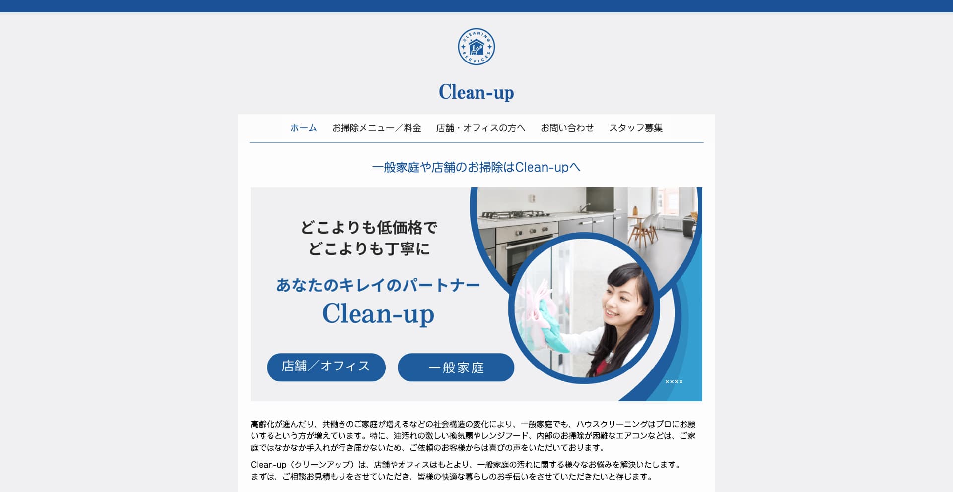 「Clean-up」は、茨城県を拠点に一般家庭からオフィス・店舗まで幅広い清掃サービスを展開するハウスクリーニング会社です。エアコンやレンジフード、キッチン、浴室、トイレ、洗面台など日常掃除では手が届きにくい場所も分解洗浄・徹底清掃で美しく仕上げ、お客様の快適な暮らしをサポートします。