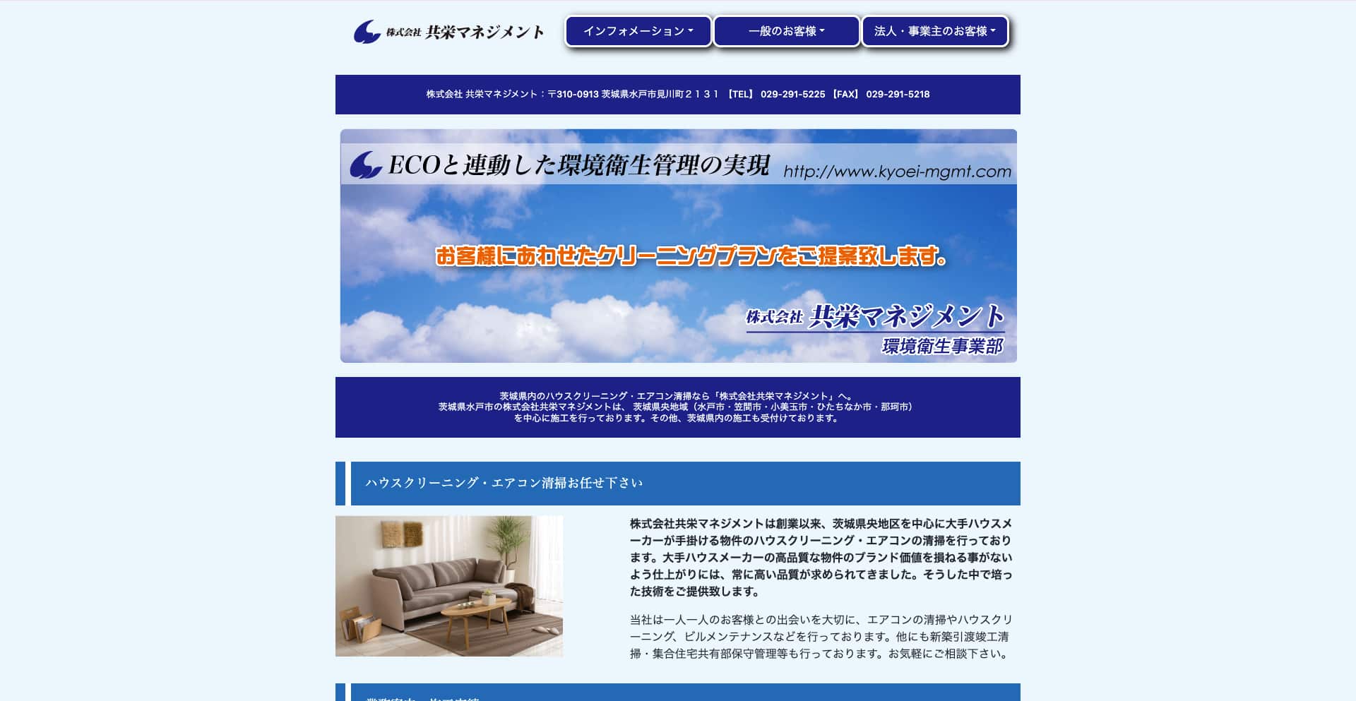 株式会社共栄マネジメントは、茨城県水戸市を拠点に地域密着でハウスクリーニングと清掃サービスを提供する企業です。一般住宅から大手ハウスメーカー物件まで幅広い清掃ニーズに対応しています。