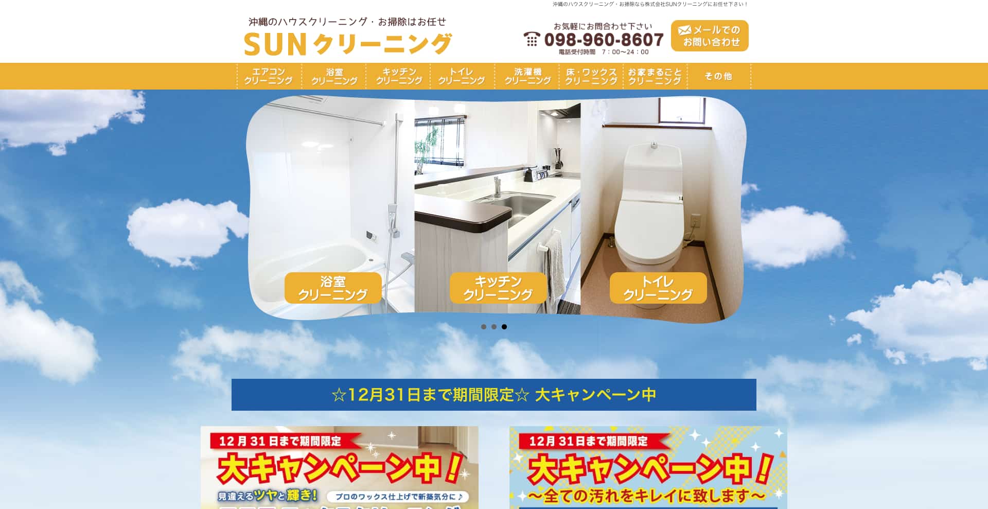 | おすすめポイント | 地域最安値に挑戦、土日祝対応、年中無休、損害保険加入済み、人や環境に優しいエコ洗剤の使用、完全自社施行による低価格の実現 |