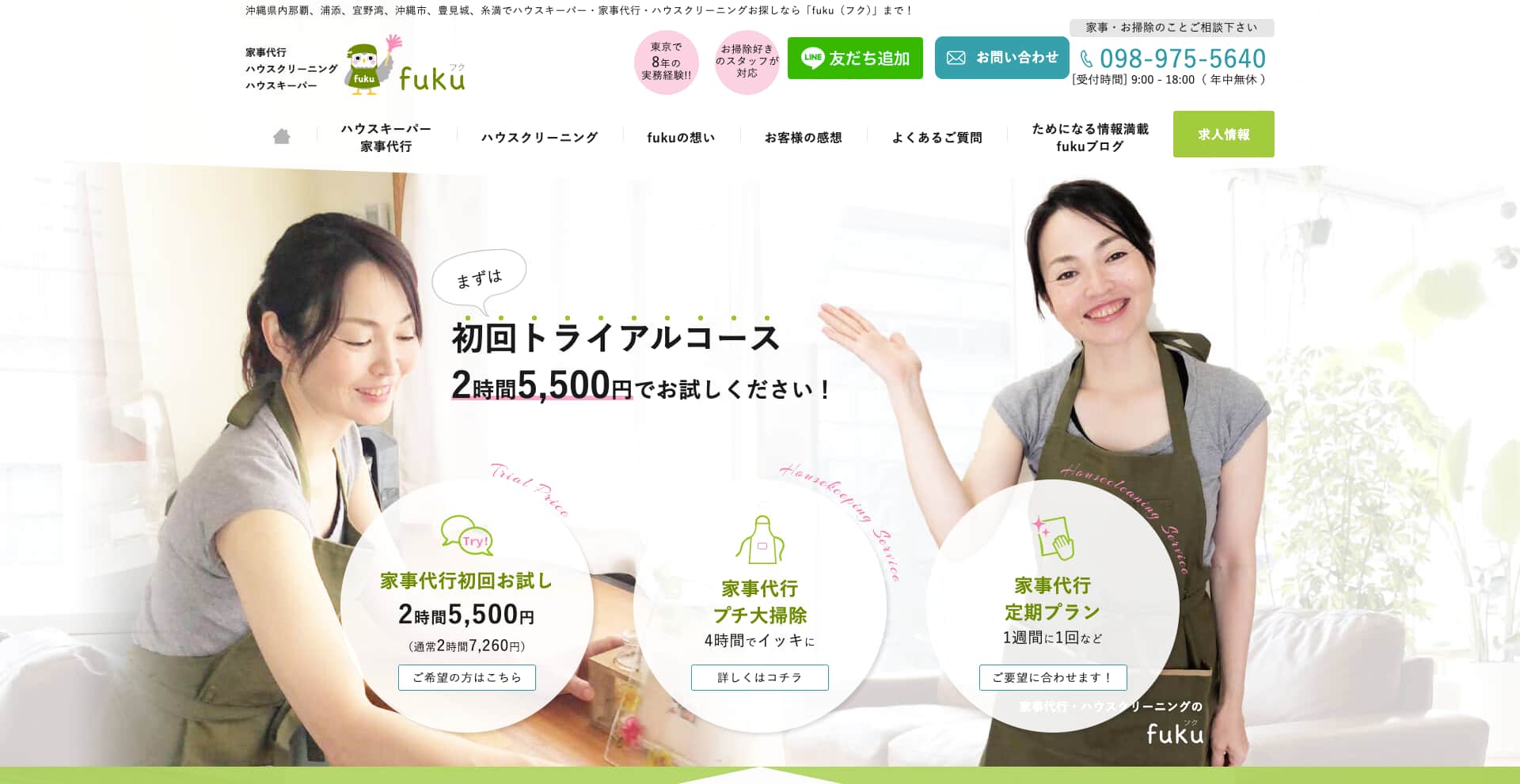沖縄県を拠点に活動する「fuku」は、家事代行・ハウスクリーニング・ハウスキーパーサービスを提供している、地域に根付いた清掃専門チームです。東京で8年の実務経験を持つスタッフが在籍し、その豊富なノウハウを沖縄のご家庭にも活かしています。「お掃除好き」のスタッフが日常の家事や汚れの落ちづらいレンジフード・エアコンの分解洗浄など、細部まで丁寧に対応。