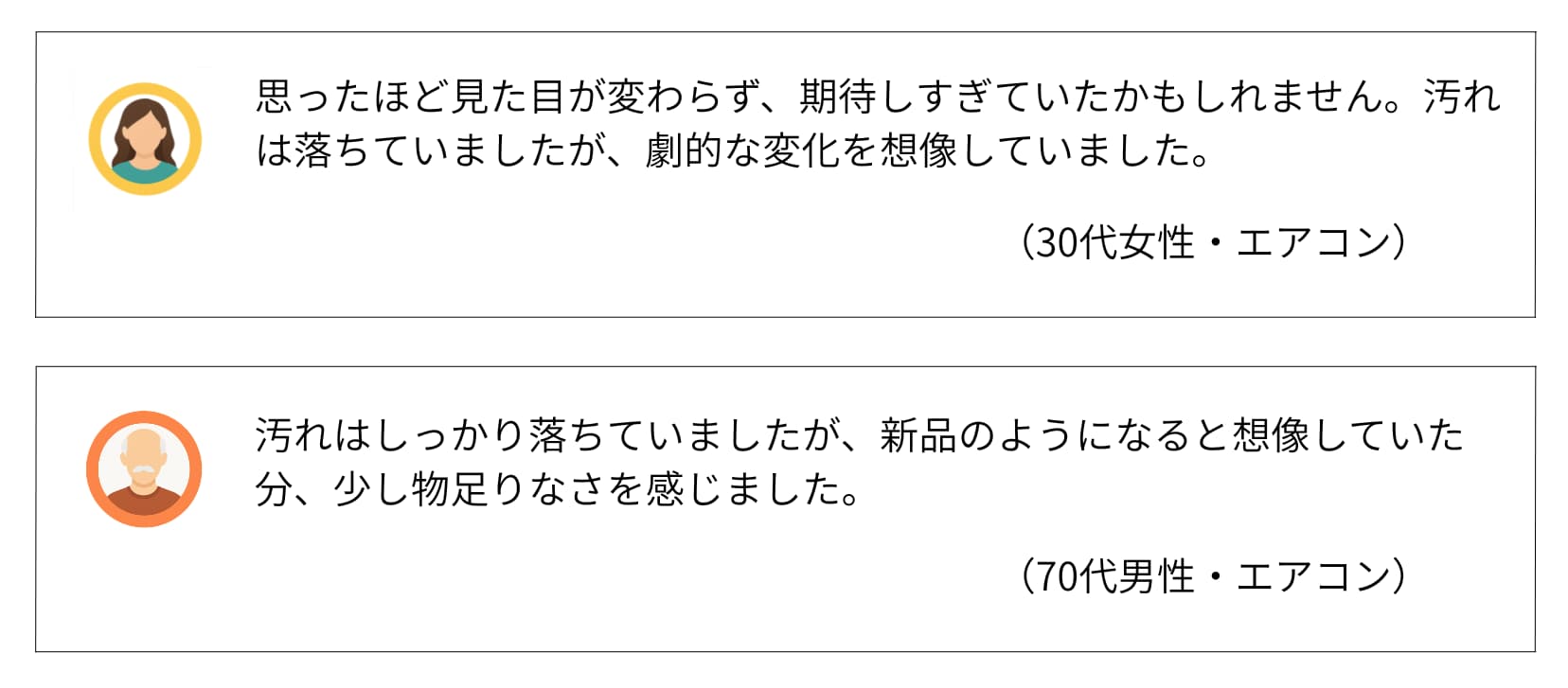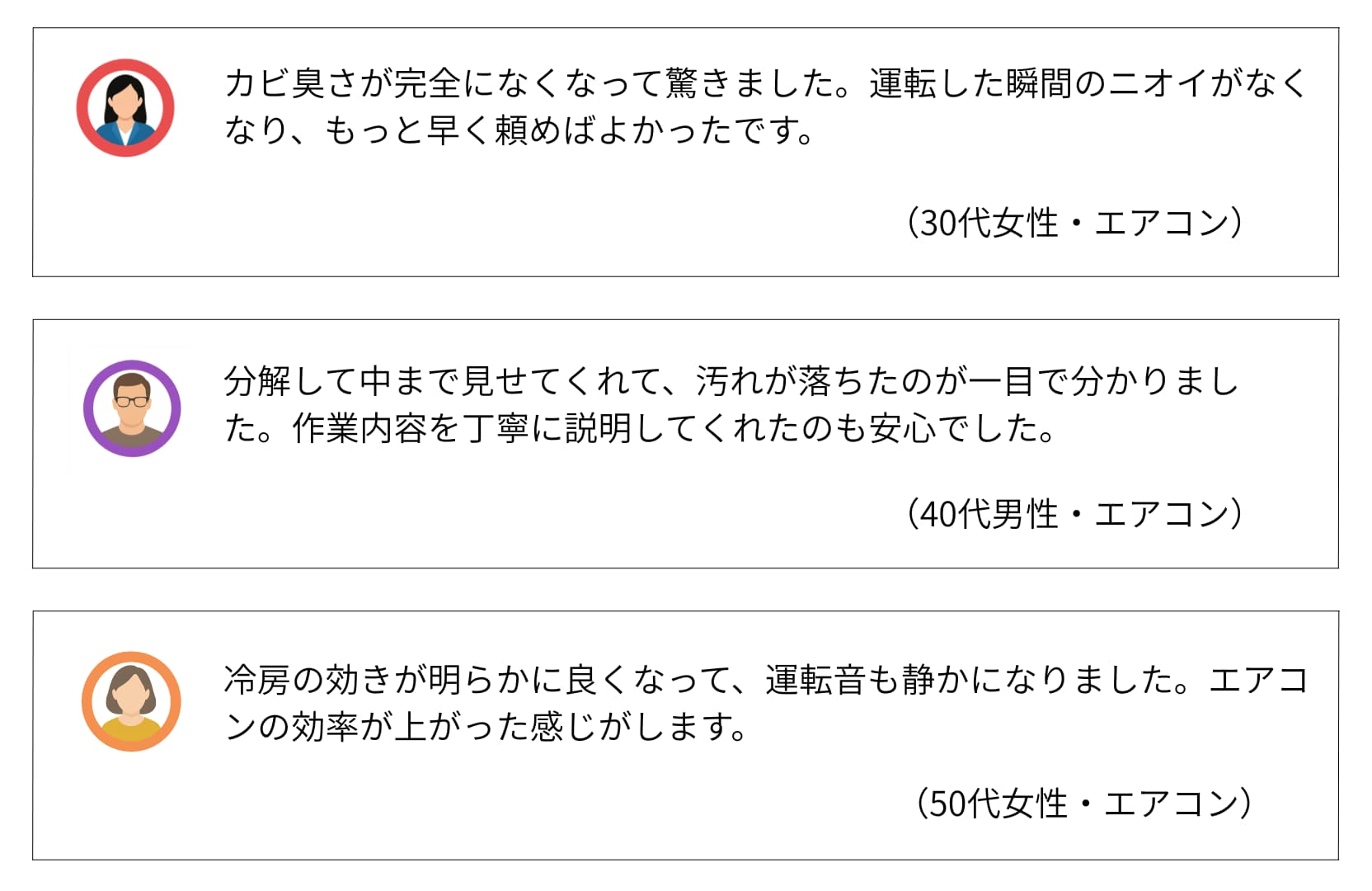 表面だけでなく、内部のカビやホコリまで分解洗浄するため、ニオイの改善や風量の変化を実感する人も少なくありません。「新品みたい」「空気が変わった気がする」といった声が多いのも特徴です。