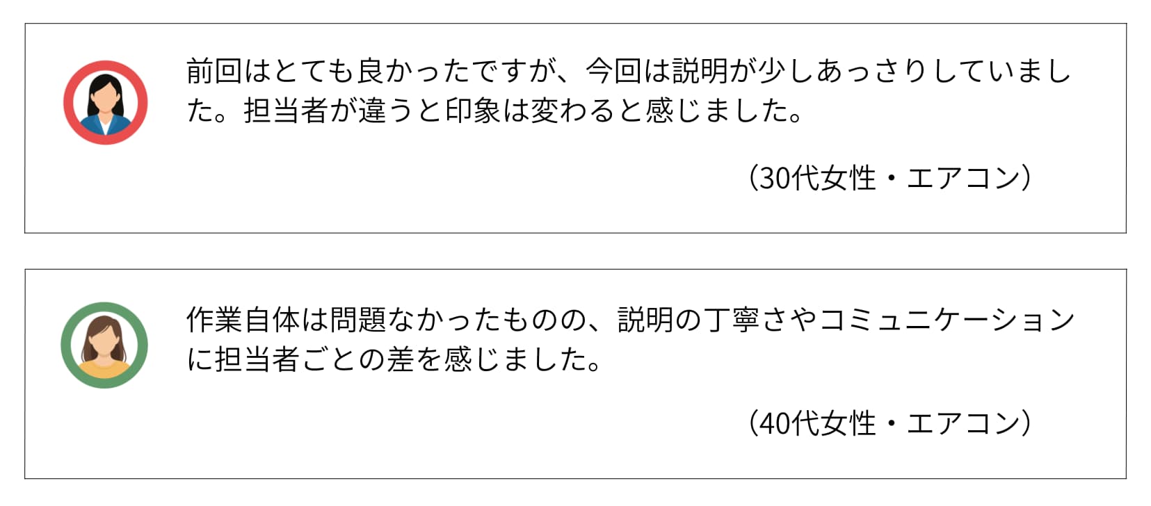 ダスキンのエアコンクリーニングは全体的に評価が安定しているものの、口コミを見ていくと「前回と比べて対応が違った」「担当者によって説明の丁寧さに差を感じた」といった声も一部見られます。