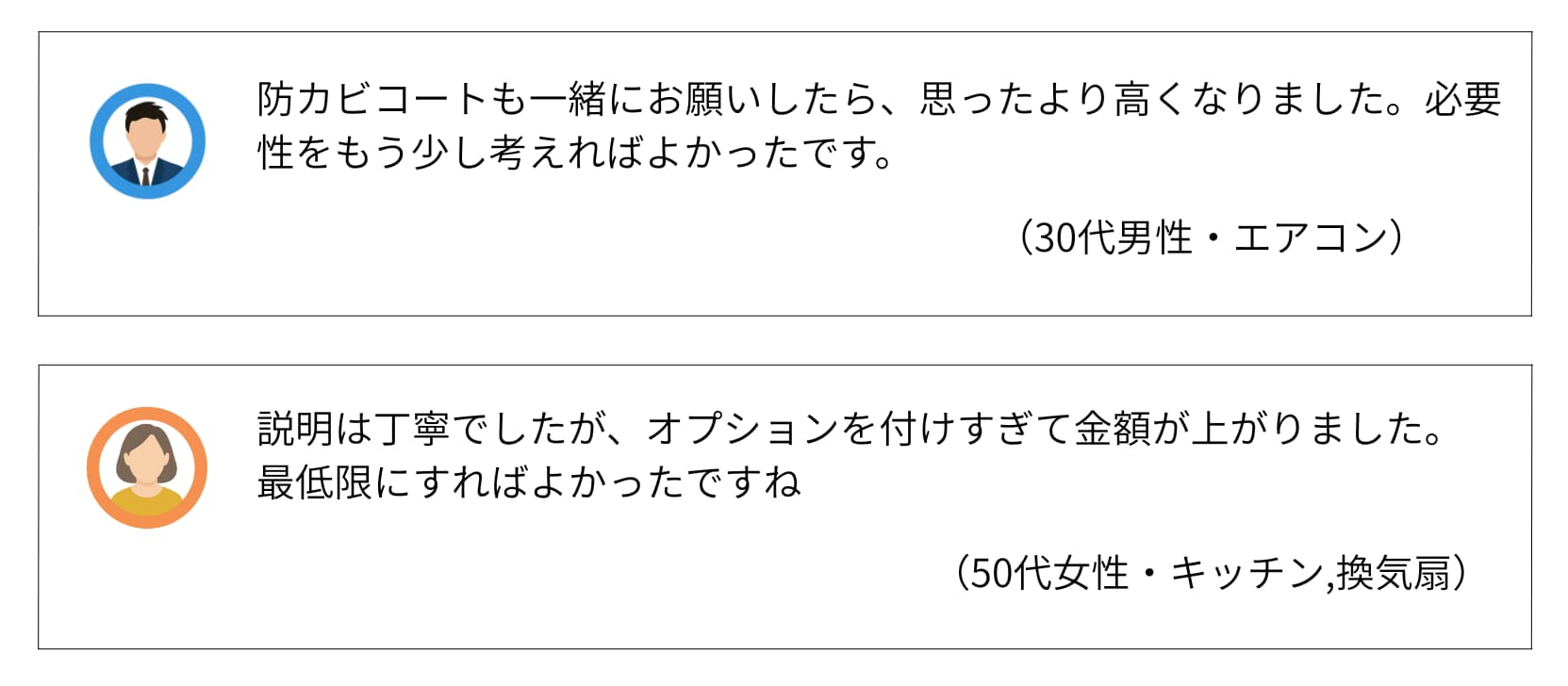 おそうじ本舗の悪い口コミの中には、「思っていたより料金が高くなった」という声も見られます。原因として多いのが、防カビコートや室外機洗浄などのオプションを追加したケースですね。
