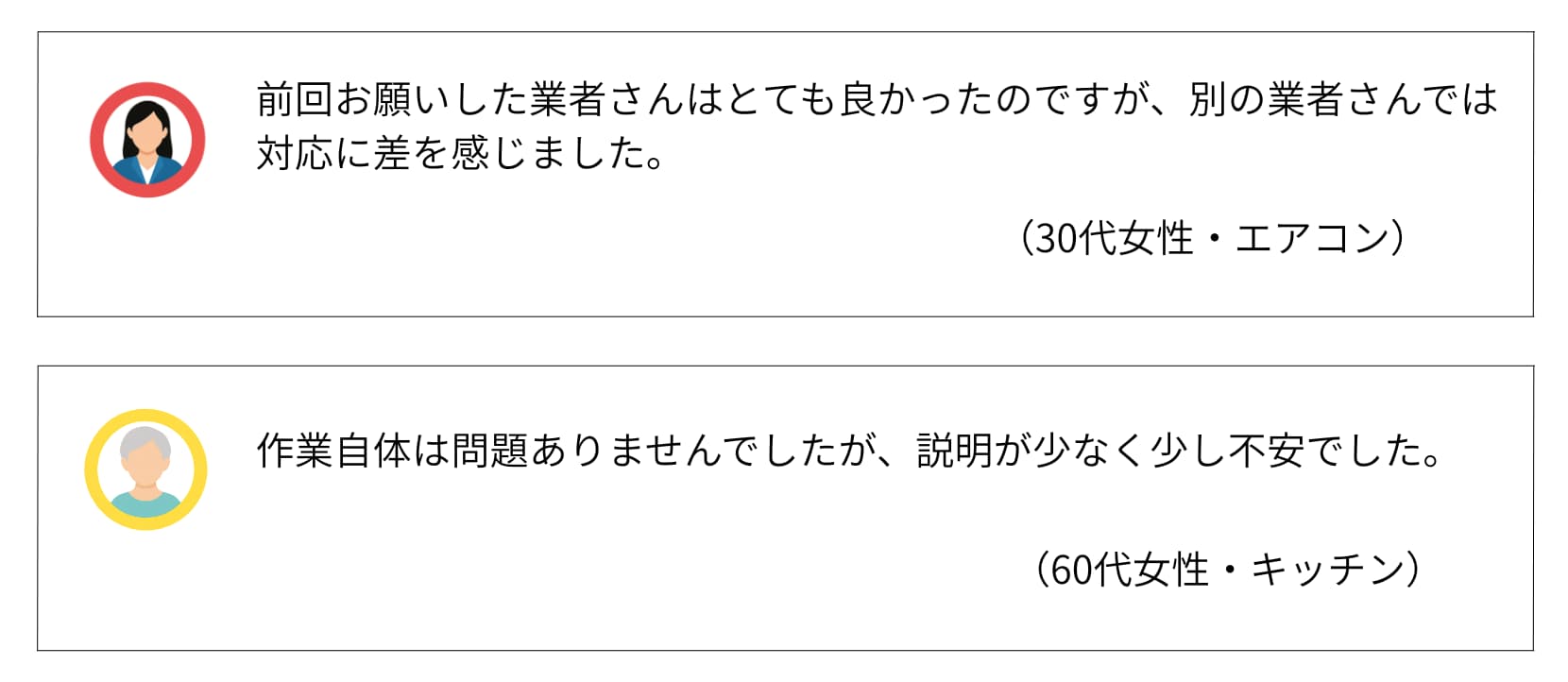 業者を自分で選ぶマッチング型サービスなので、選ぶ業者によって仕上がりや対応に差が出やすいからです。