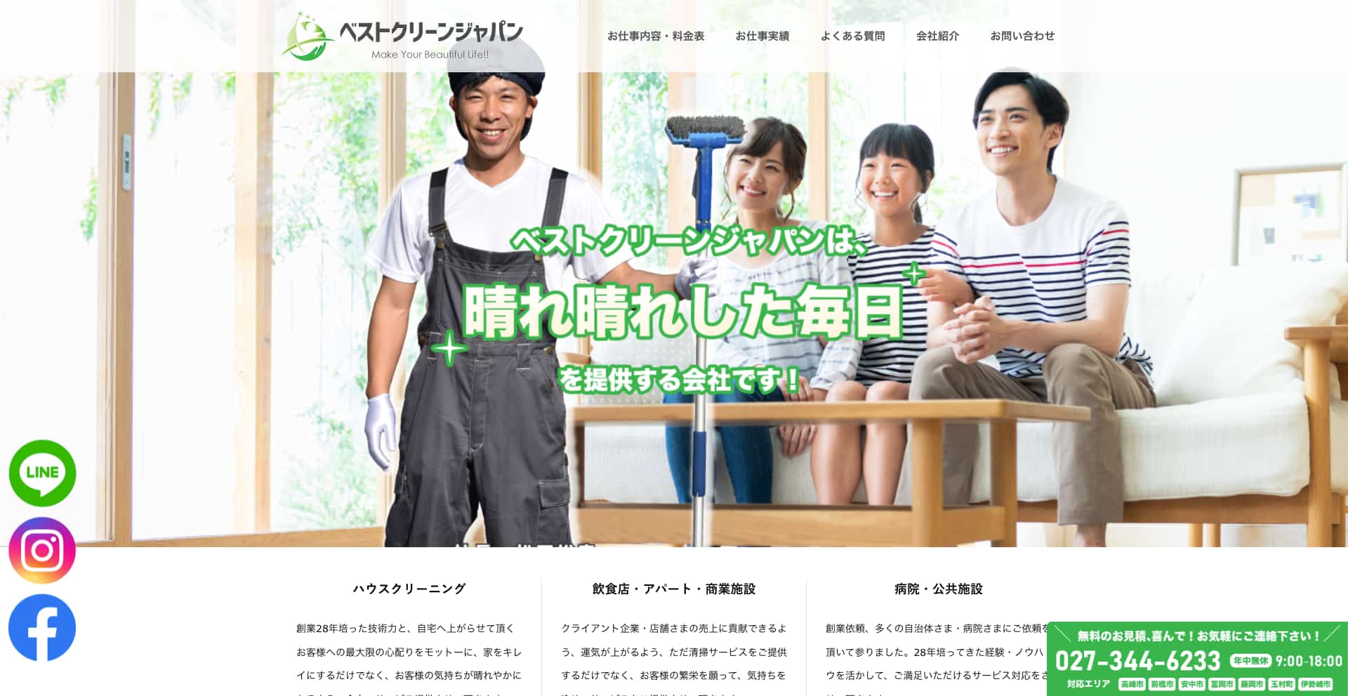 「ベストクリーンジャパン」は、群馬県高崎市を拠点に、創業28年の実績を持つハウスクリーニング専門会社です。「家をキレイにする」ことだけを目的とせず、お客様が安心して快適に過ごせる空間づくりを何より大切にしています。水まわり・エアコン・レンジフード・フローリングなど、暮らしの中で汚れが気になるあらゆる場所を、経験豊富な職人が丁寧にクリーニング。
