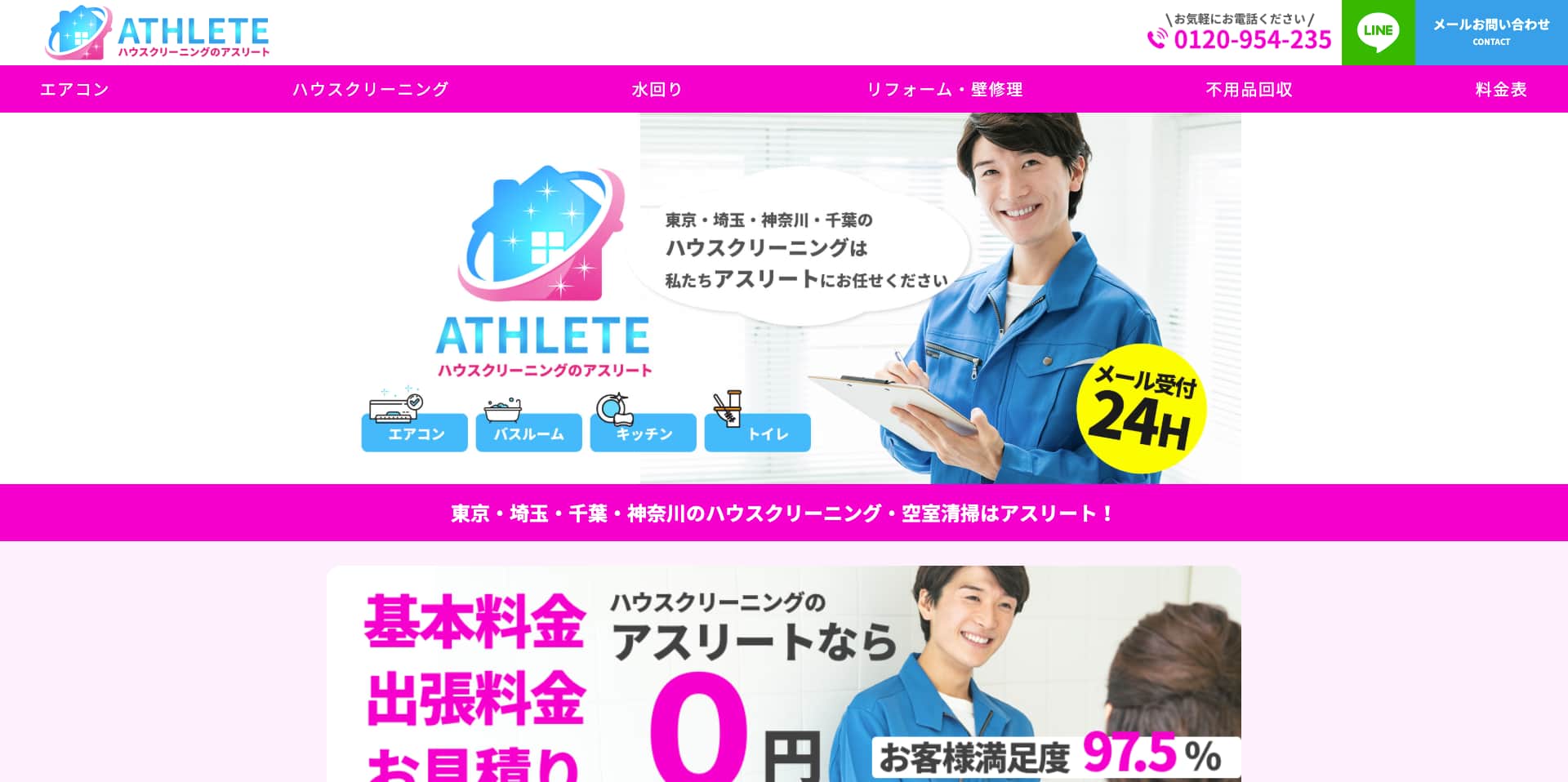 株式会社アスリートは、ハウスクリーニングサービスを提供しています。個人宅から賃貸物件、オフィスまで幅広いニーズに対応し、エアコンやキッチン、浴室、トイレなどの水回りの清掃から、空室清掃、リフォームまで多岐にわたるサービスを展開しています。特徴は、明朗な料金体系と高品質なサービスです。作業内容や設備の規模に応じた定額料金を採用し、追加料金の発生を防ぐことで、顧客に安心感を提供しています。