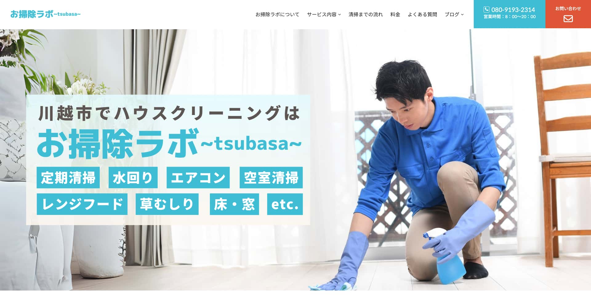 「お掃除ラボ〜tsubasa〜」は、埼玉県川越市を拠点に、安心・高品質なハウスクリーニングサービスを提供しています。エアコンクリーニングや水まわりのお掃除、引っ越し前後の空室クリーニング、床・窓・換気扇の清掃など、住まい全体をトータルでケアできる豊富なメニューが揃っています。プロの技術で目に見える箇所だけでなく、目立たない“裏側”部分まで徹底的に清掃するのが大の特長。